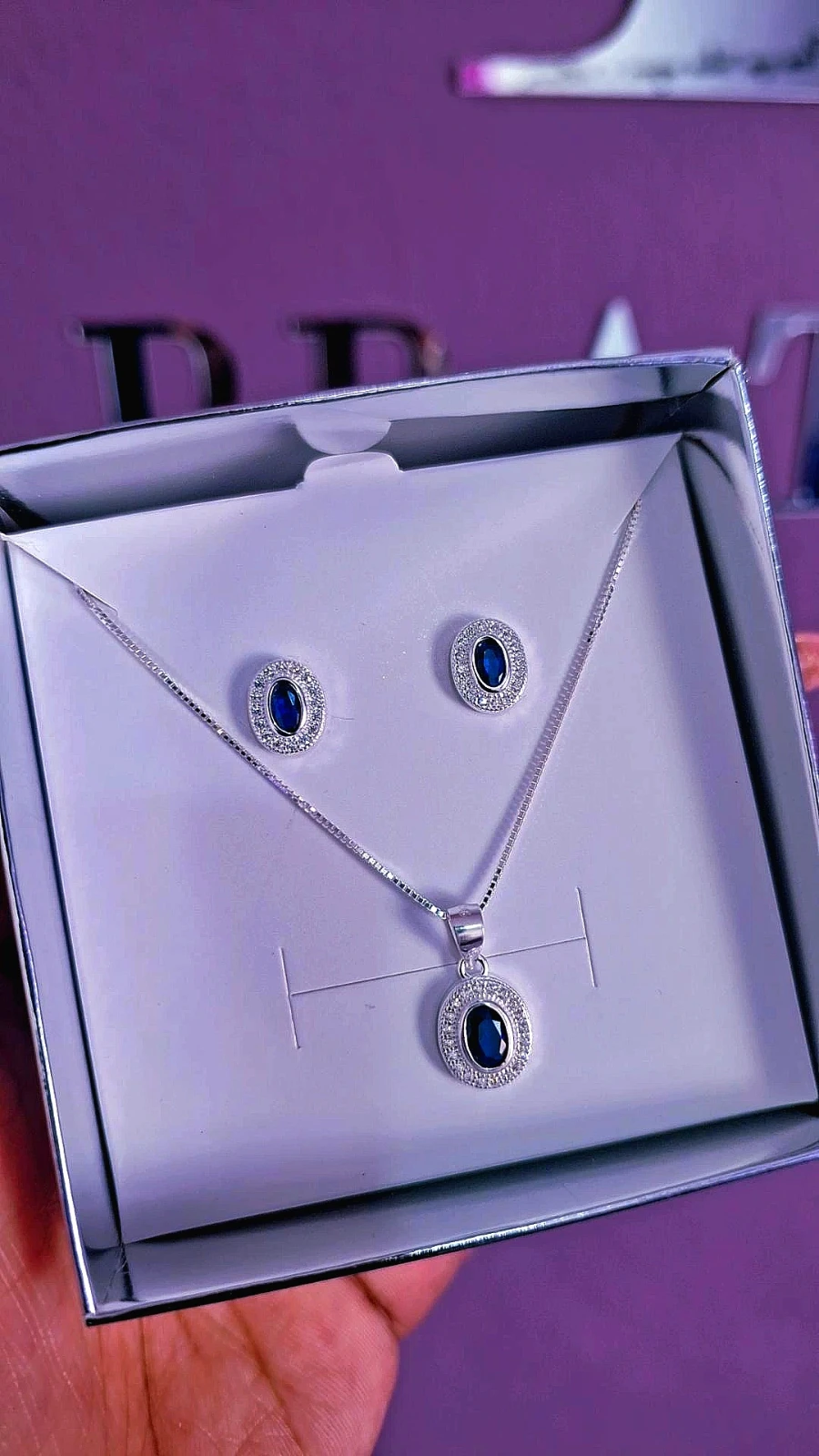 Conjunto Colar e Brincos Azul Safira Prata925