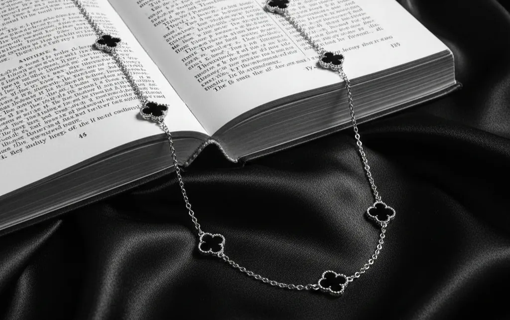 Choker 7 trevos Preto Prata925