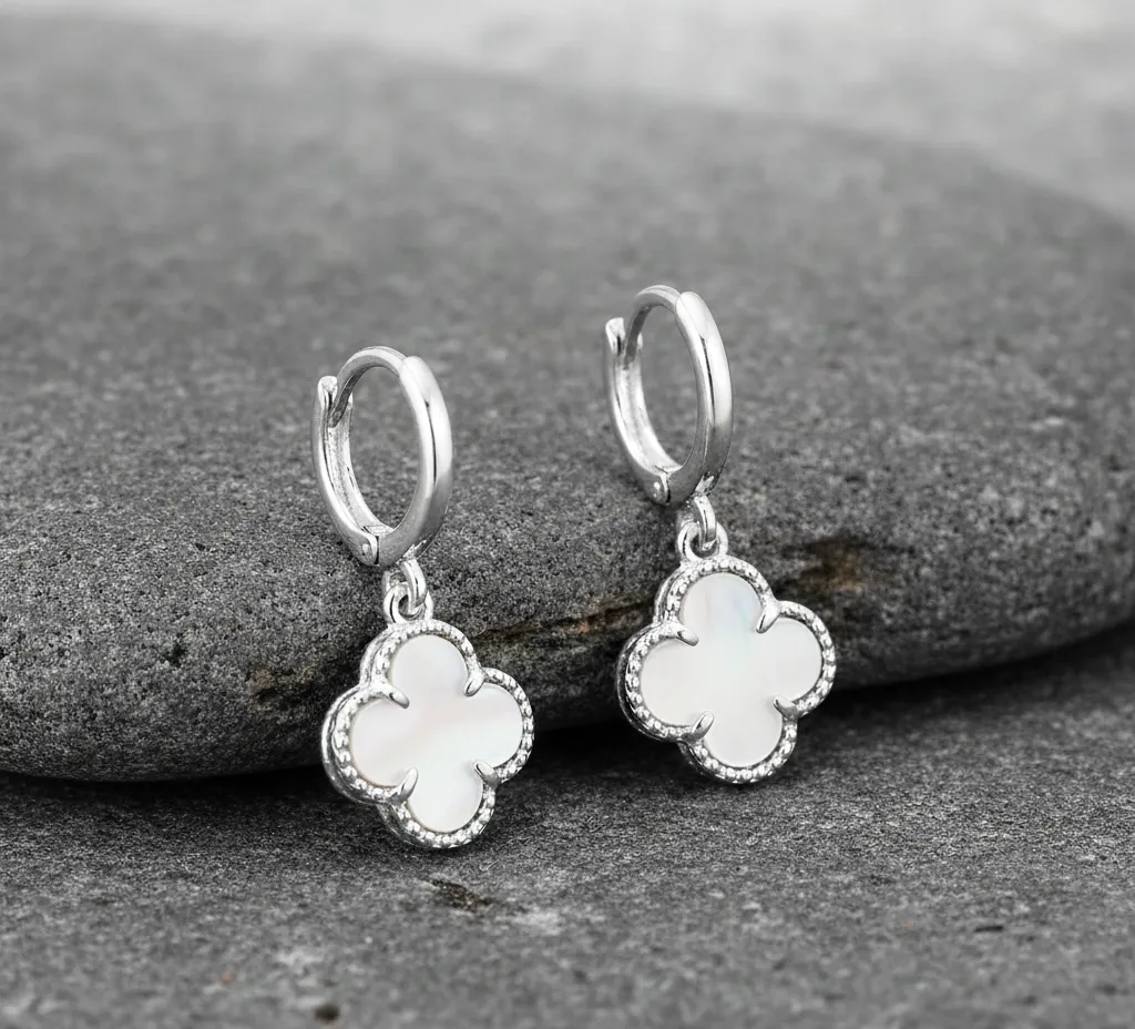 Argola Click Trevo Branco Prata925