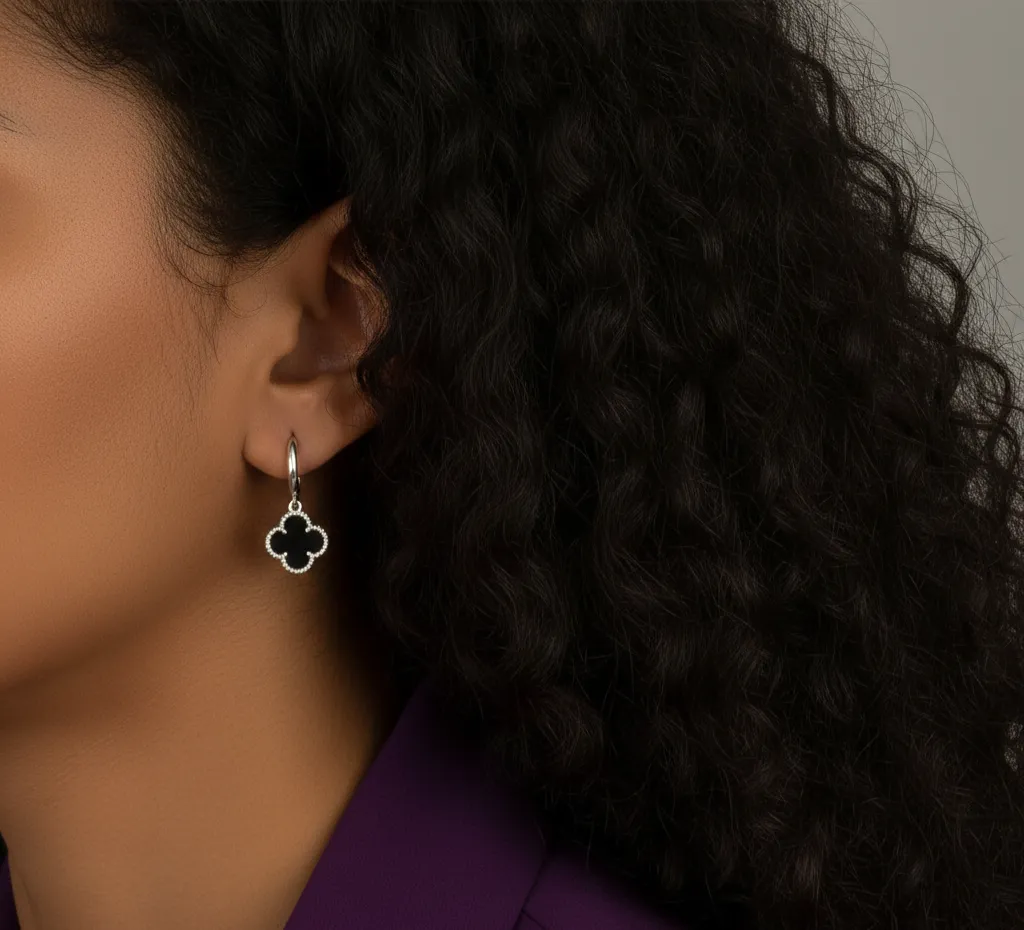 Argola Click Trevo Preta Prata925