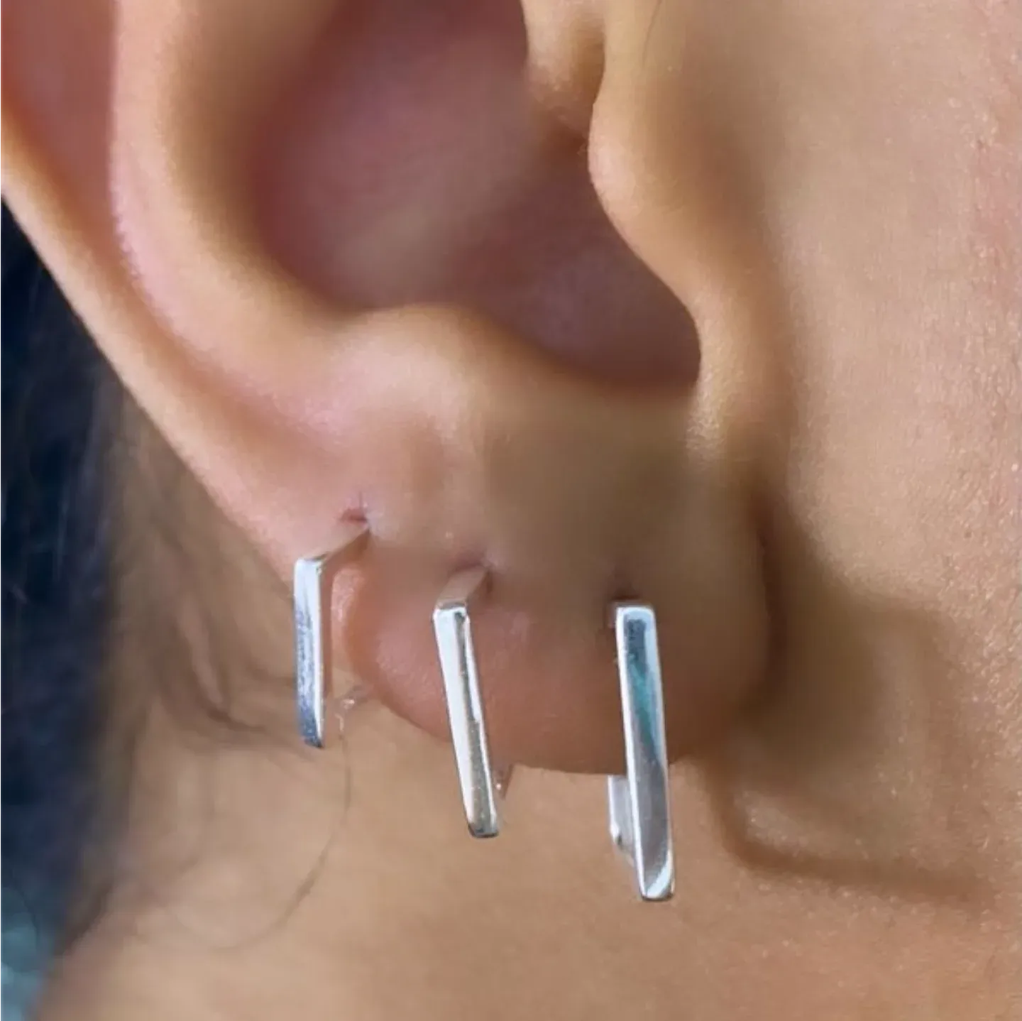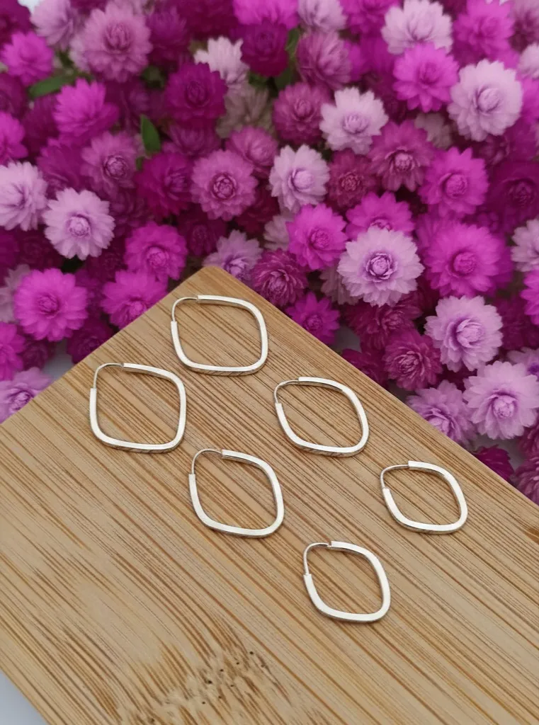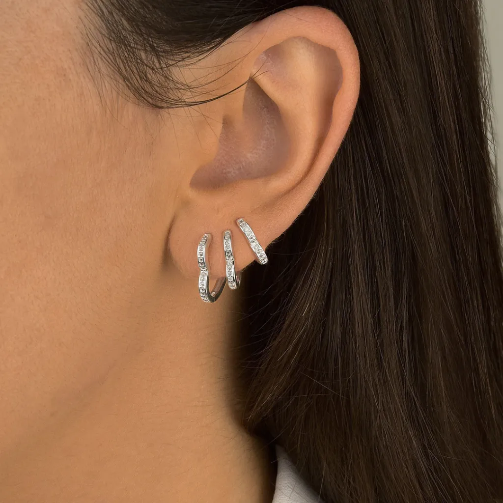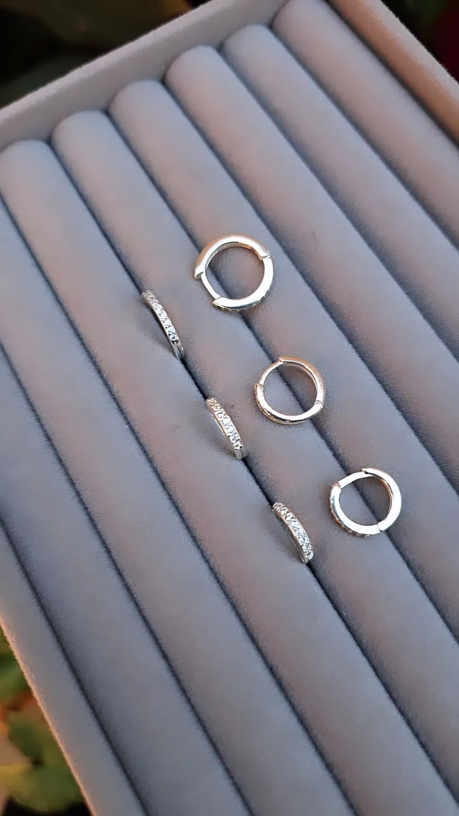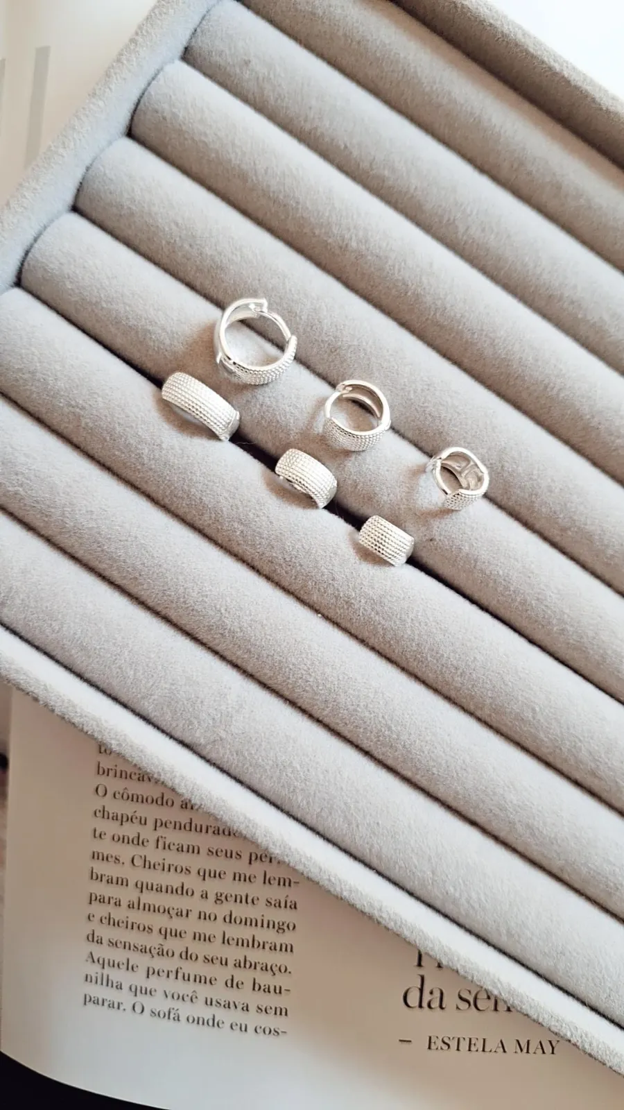 Trio De Argolas Click Cravejadas Quadradas Prata925