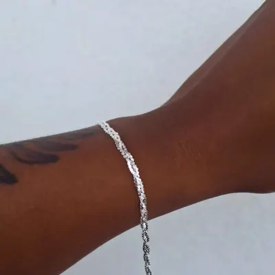 Pulseira Trançada Brilhosa Prata 925