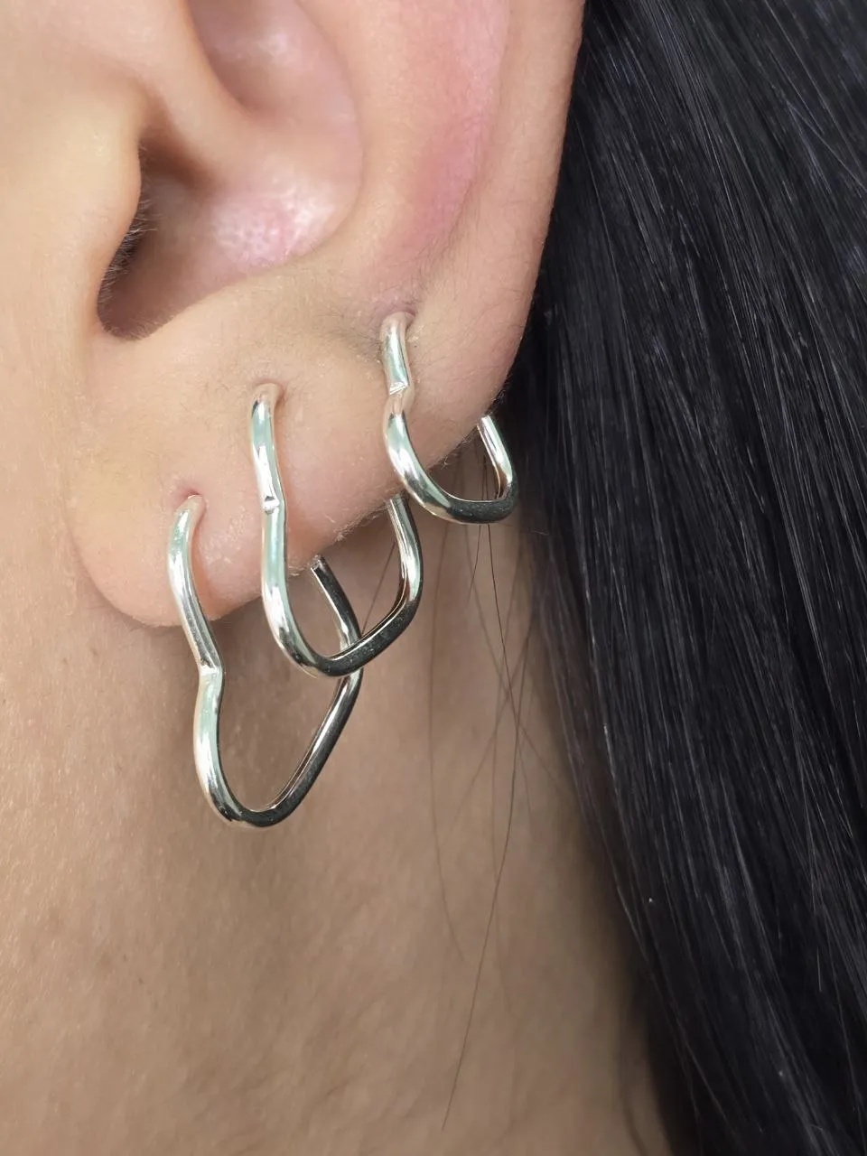 Este conjunto exclusivo de argolas em prata 925 combina design delicado com resistência, ideal para quem busca peças versáteis e atemporais. O detalhe em formato de coração acrescenta um toque romântico e moderno, perfeito para complementar qualquer look.