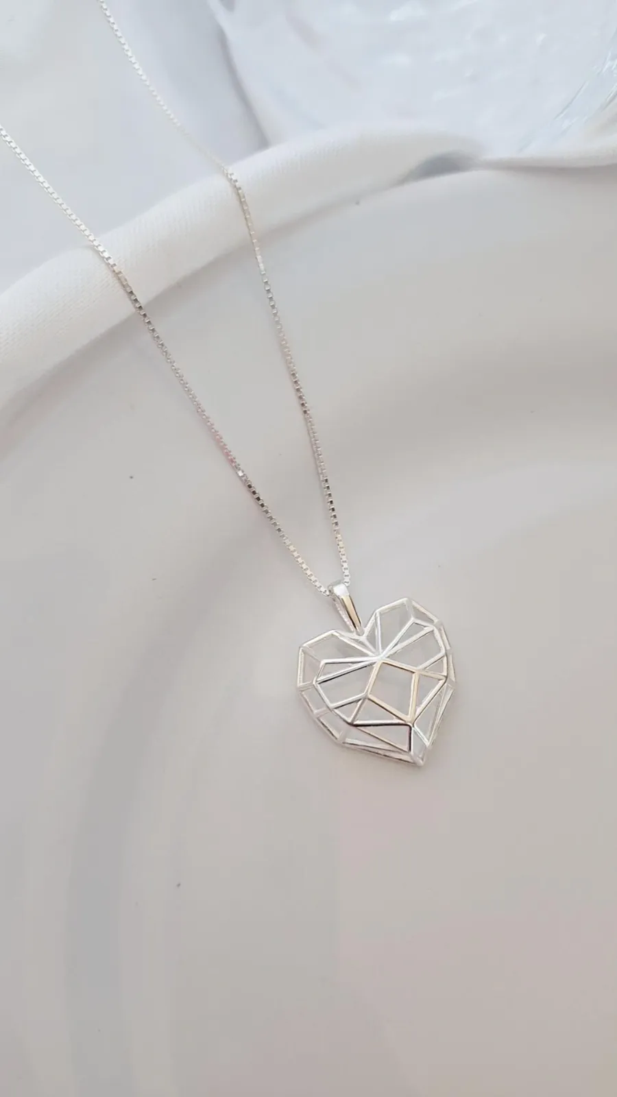 Colar Coração Geométrico Prata 925: Elegância e Modernidade em Uma Peça Única. Este colar destaca-se pelo design geométrico sofisticado e pela qualidade da prata 925, garantindo durabilidade e brilho incomparáveis. Ideal para complementar looks do dia a dia ou ocasiões especiais, adicionando um toque de delicadeza e estilo. Adquira agora e valorize sua coleção com uma joia que une arte e requinte.