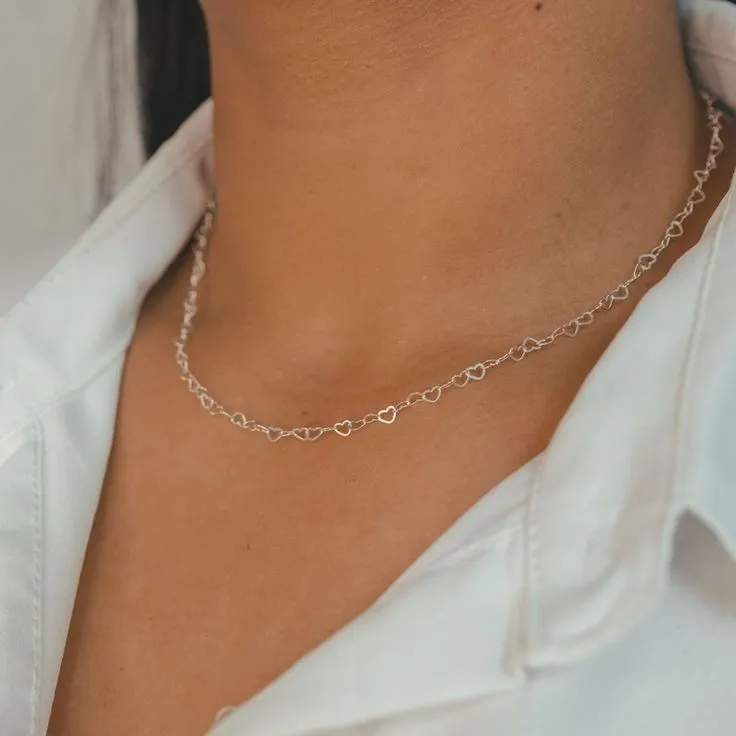Choker Corações Prata925 40cm: Elegância e delicadeza em prata