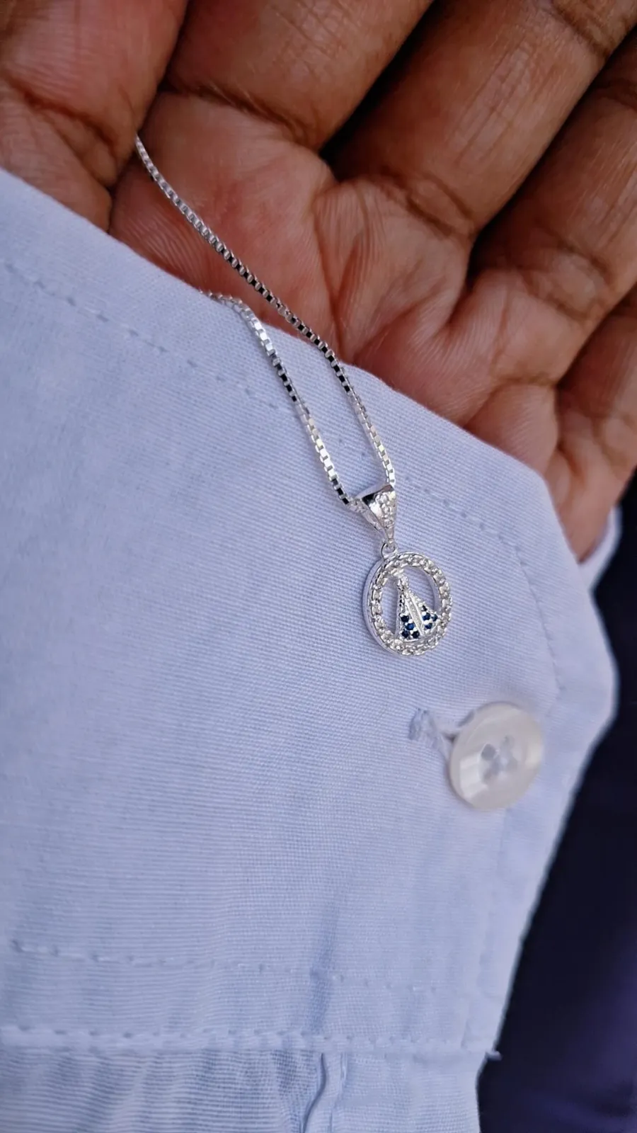 Colar Nossa Senhora Aparecida Cravejado Prata925: Elegância e fé em um só acessório. Este colar em prata 925 apresenta um delicado pingente cravejado, perfeito para quem busca estilo e proteção espiritual. Ideal para uso diário ou ocasiões especiais, ele valoriza seu visual com um toque de significado e sofisticação. Adquira já e leve consigo uma peça que une beleza e devoção com confiança.