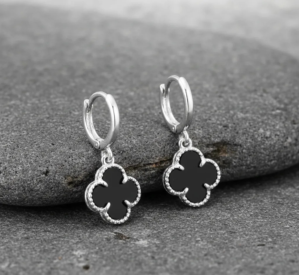 Argola Click Trevo Preta Prata925: sofisticação e delicadeza para seu estilo. Esta argola une o charme do trevo à resistência da prata 925, oferecendo um toque moderno e discreto. Perfeita para ocasiões formais ou uso diário, realça sua personalidade com elegância. Adquira agora e eleve seu visual com qualidade e design exclusivos. Ideal para eventos sociais, trabalho ou passeios casuais.