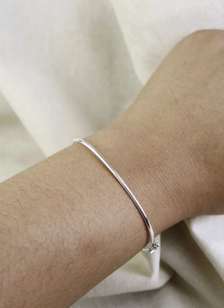 Bracelete fino em Prata 925 com acabamento polido: leve, resistente e com brilho suave que valoriza qualquer pulso. Design minimalista perfeito sozinho ou em camadas para um visual moderno e sofisticado.
