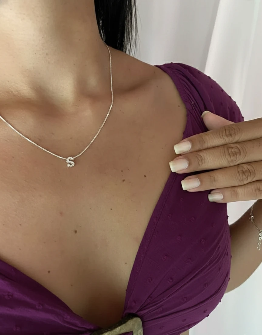 Pingente em prata 925 com letra inicial, design minimalista que valoriza qualquer look e funciona como presente sentimental.